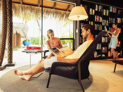 图书馆的内部设计构思巧妙,藏有 1000 多册各种题材与兴趣领域的精选图书杂志,是您在岛屿冒险的闲暇之余安静畅游书海的不二之选。 图书馆提供高速无线网络,方便您与家乡的亲友远程联络,或选一处舒适的座椅,让一杯咖啡或一盏香茗陪伴您度过美好而充实的阅读时光。